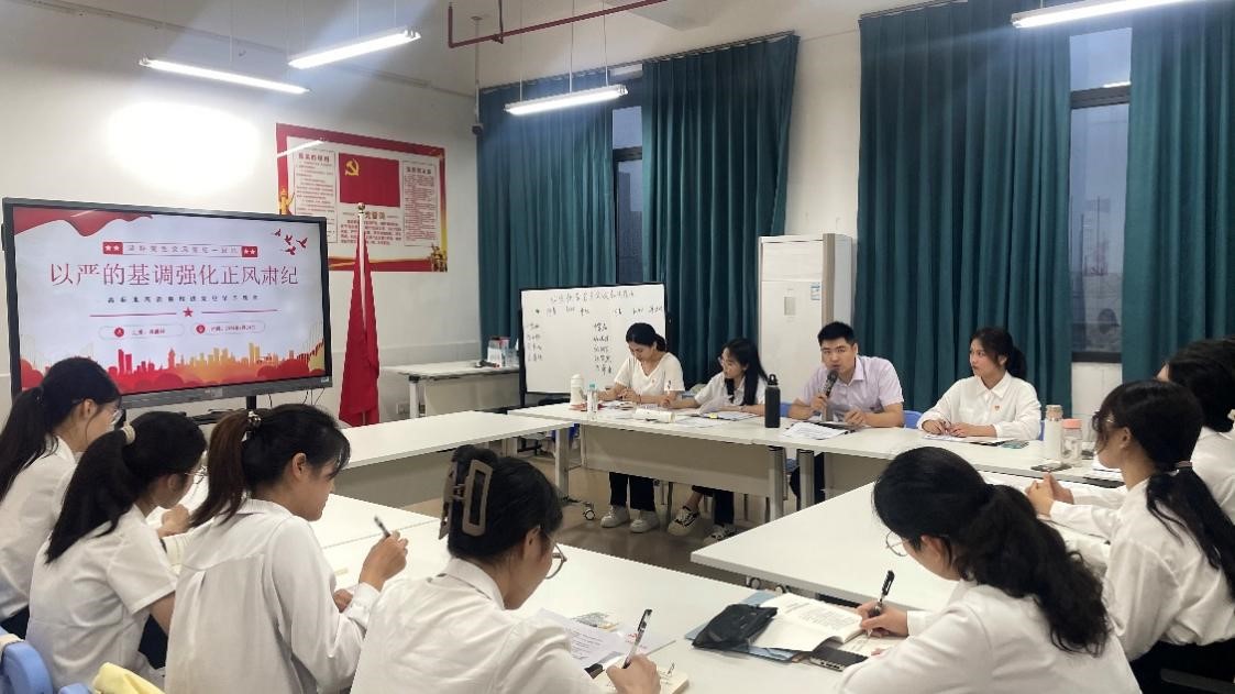 会上,党支部书记吴晨阳老师以《坚持党性党风党纪一起抓,以严的基调强化正风肃纪》为题作党纪学习教育专题党课。他强调党纪学习教育的重要性,并结合学院实际情况,从深刻认识不正之风的本质和危害,深刻把握当前不正之风的特点规律,始终以严的基调树新风正风纪等三个方面展开讲述。吴老师指出,作为师范类学生党员,要自觉提高政治站位,加强思想政治教育,认真学习新修订的《中国共产党纪律处分条例》,以身作则,端正师德师风,始终以严的基调树新风、正风气,扣好人生的第一粒扣子,高质量、高标准推进党纪学习教育,要以本次学校教育教学审核评估为契机,举一反三,查找薄弱环节,促进专业本科教育教学工作质量实现进一步提升。