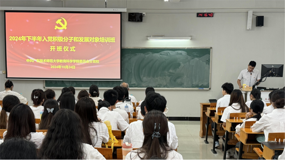 为深入学习习近平总书记重要讲话和重要指示精神,牢牢把握新时代党校工作的根本遵循,强化党员教育培训工作规范提升,助推新时代党校事业高质量发展。2024年10月24日,金年会分党校于白云校区第三教学楼403教室举行了入党积极分子和发展对象培训班开班仪式。学院党委书记张旭日、研究生第一党支部书记梁爽、研究生第二党支部书记张晓颖、教育技术学本科生党支部书记热依拉·艾比布力、学前教育本科生党支部书记吴晨阳、应用心理学本科生党支部书记肖孟琦、专职辅导员袁炜出席会议。会议由吴晨阳主持。
