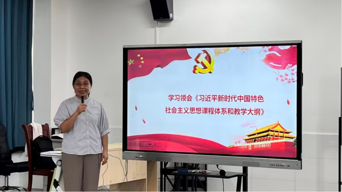 增补委员会议结束后,支部随即开展了书记讲党课。党支部书记杨慧芳以学习《习近平新时代中国特色社会主义思想课程体系和教学大纲》为主题,通过系统讲解课程体系的框架结构与核心内容,带领全体党员深刻领会习近平新时代中国特色社会主义思想的精神实质与时代价值,进一步增强了理论认同和行动自觉。