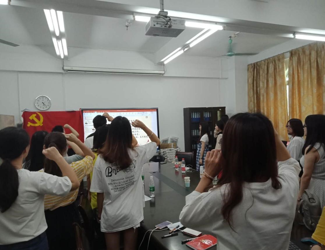 我院于2018年6月15日下午5点在一教1413会议室开展了2017-2018第二学期本科生第一支部、本科生第二支部吸收预备党员会议。此次大会的目的是讨论吸收拟发展对象转为预备党员的决定,支部大会参会人员有本科生第二党支部书记肖老师、两支部的党员同志与拟吸纳为预备党员的建党对象。