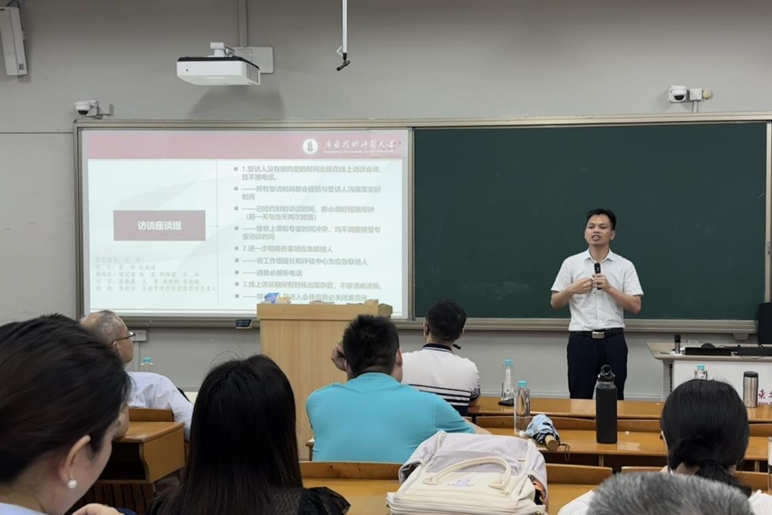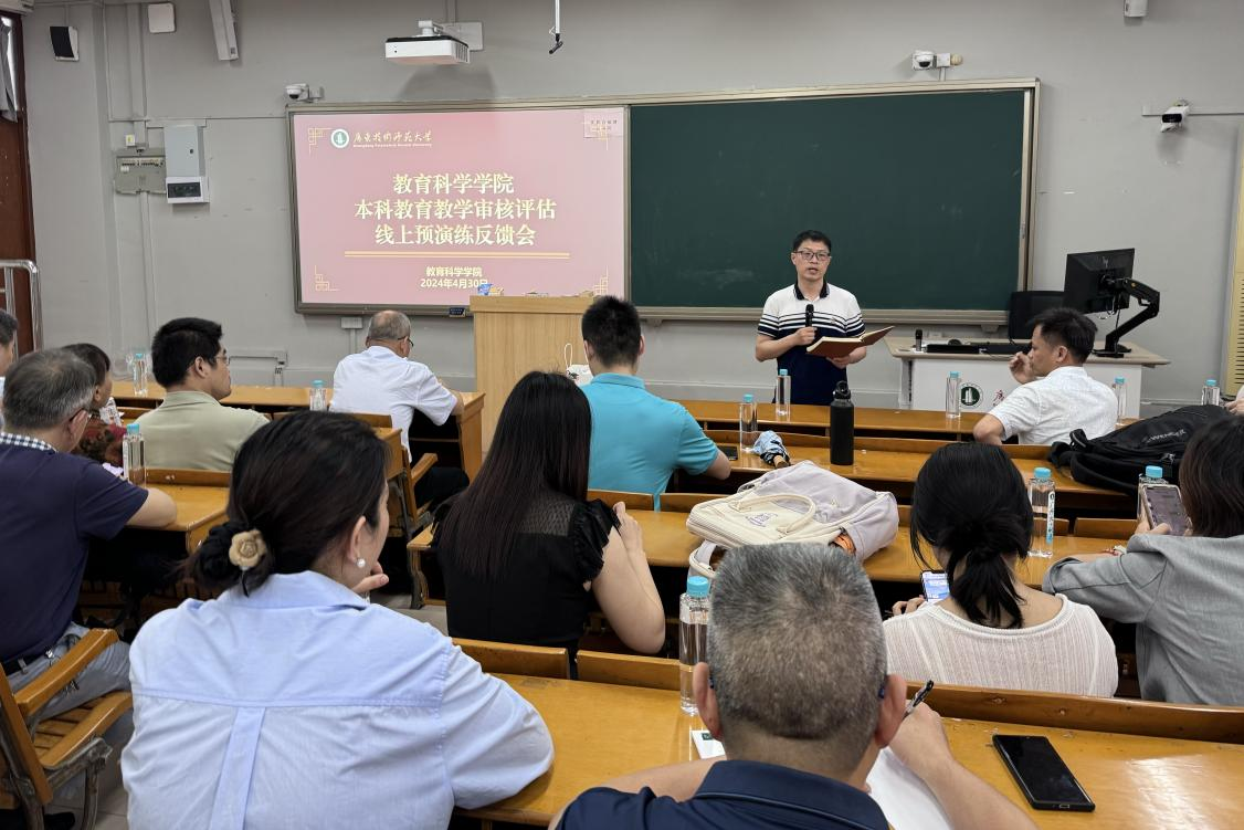 会上,谢德新就本科教育教学审核评估的前期准备工作,对老师们表达了感谢,并就426日学校召开的本科教育教学审核评估线上评估预演练反馈会的会议内容进行了详细的解读。谢德新从材料规范性问题、工作人员准备、听课看课、课堂教学、学生管理、座谈访谈、设备要求等方面进行逐一分析,详细地提出在线上评估预演练过程中发现的问题,并部署了下一步准备工作。谢德新强调,要进一步确保材料规范性和完整性,加强学风管理、课堂秩序管理及学生管理,以审核评估为契机,进一步提升课堂教学质量,为评估专家到校审核评估做好充分准备。