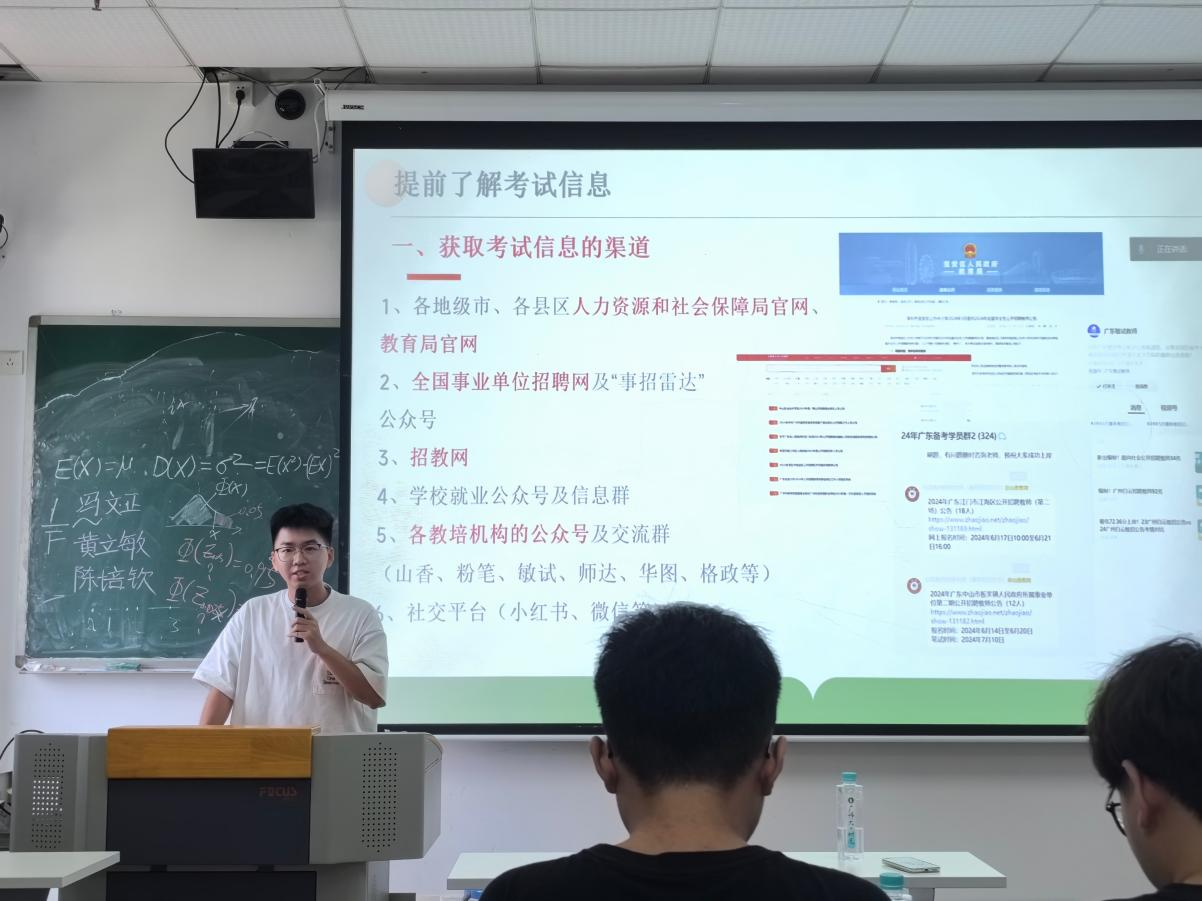 随后,已经在考编、考公道路上获得成功的师兄师姐们从考试政策解读、如何选择岗位、备考资料选择、复习计划制定到心态调整、如何应对面试,全面剖析了考编、考公的各个环节。他们强调,成功并非偶然,而是长期努力与正确方法的结晶。同时,他们也分享了面对挫折时的坚持与自我激励之道,鼓励在座的每位同学,无论遇到多大困难,都要保持乐观态度,坚定信念,勇往直前。每一位演讲者用实际行动诠释了“授人以渔”的真谛,使得在场的每位听众都能汲取到适合自己的营养,为自己的未来规划增添了一份信心与底气。