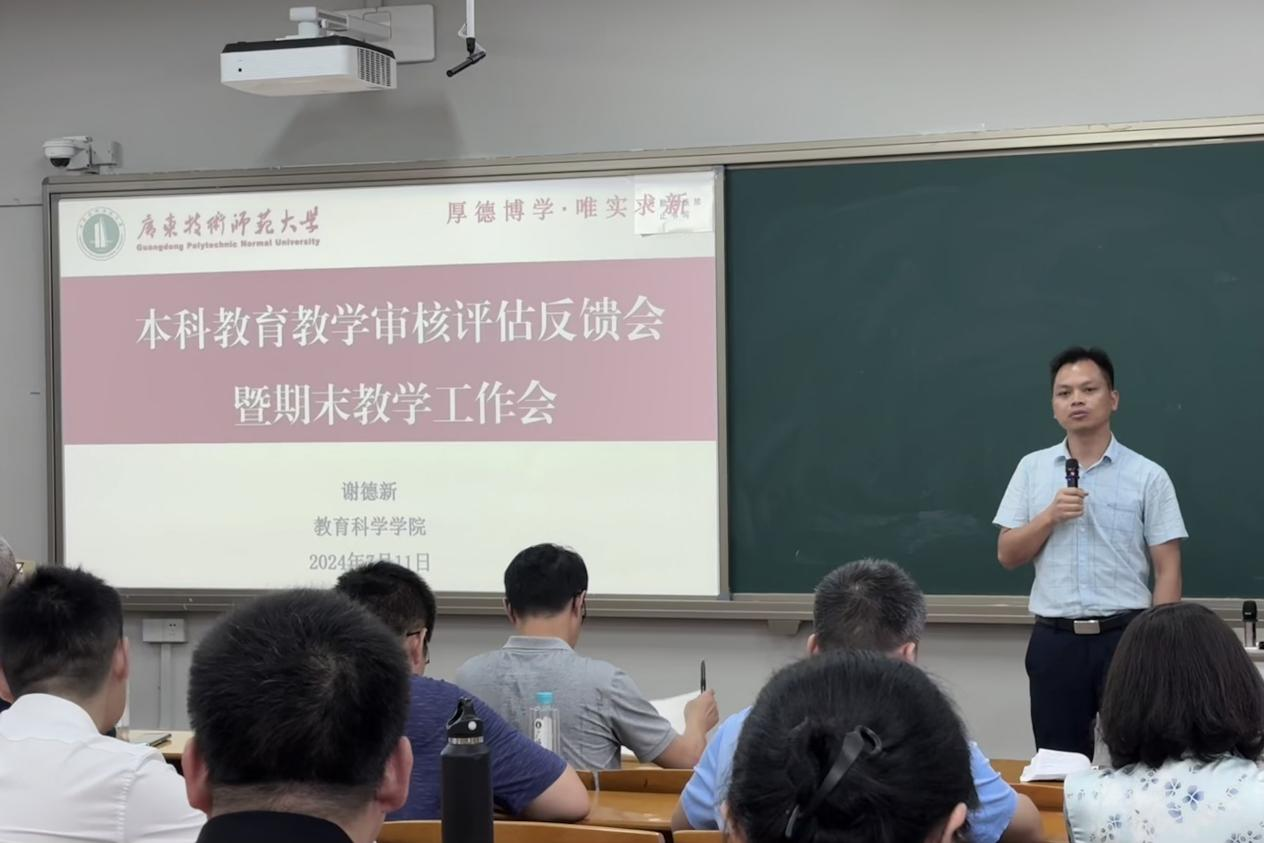随后,谢德新针对迎评过程中发现的问题,如教育实习、见习、研习材料规范性问题、试卷评阅及分析材料问题、毕业论文格式规范等问题进行了解析。同时,他就试卷命题工作中存在的形式、题型、分数分配及审批流程规范性等问题,提出了具体的改进建议。谢德新要求教师要以本次评估为契机,结合上述存在的问题,不断改进和完善,进而提升学院的教育教学水平,更好地迎接教育技术学和应用心理学师范专业认证,以及学前教育师范专业认证后的持续改进工作。