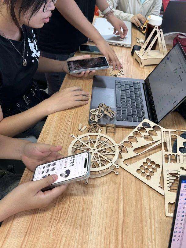 活动的高潮是小组式制作摩天轮项目,同学们在团队合作中学会了沟通与协作,共同完成了摩天轮模型的设计与制作。这一过程不仅锻炼了学生们的动手能力,也增强了他们的团队合作精神。