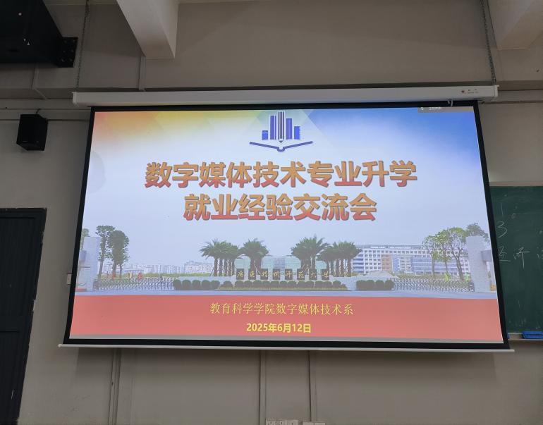 2025年6月12日晚上,数字媒体技术专业考研暨就业经验分享会在白云校区三教214教室顺利召开。此次大会由数字媒体技术系主任伍国华老师组织开展,21级学长学姐分享经验,22 级和23级数字媒体技术专业学生参加。此次大会旨在为数字媒体技术专业学生搭建考研就业经验交流平台,助力2022级和2023级学生有序推进学习工作,明晰发展方向。