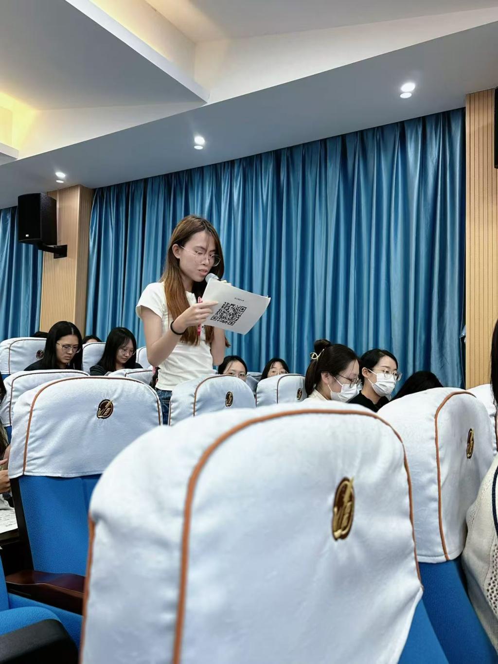 教研活动中,长兴中学林丹忆老师以“乐观时间指向性”为教学内容理念的课程设计,让学生直观感受到积极心理学理论在课堂中的生动转化。第七十五中学马妍老师分享了提升心理课实效性的实践策略,有助于学生理解心理课堂的深度设计与实施逻辑。最后,第七十五中学朱清老师分享的《我的“音乐心晴”--五育并举系列心理特色课例》,把音乐、美术等元素融入心理健康课程,为学生创新心理课程设计提供了新思路。我系学生在活动现场也表现出高度的学习热情,他们认真记录每个教学细节,在交流环节围绕教学问题与一线教师进行深入探讨,并踊跃发言,充分体现了教研活动对学生专业成长的促进作用。张玲燕副教授在观摩后指出:“本次教研不仅展现了心理教育的前沿实践,也拓展了高校师范生的学习视野。学生通过在真实教学场景中观摩、思考和交流,有助于加强理论与实践的联系,为未来职业发展打下坚实基础。” 学生普遍反映此次学习收获匪浅,有学生表示通过此次实地观摩与交流,看到了抽象理论在真实课堂中的生动呈现,心理知识不再是书本上的概念,而是可实践、可感知的教学行为,提供了其对未来教学生涯的期待。