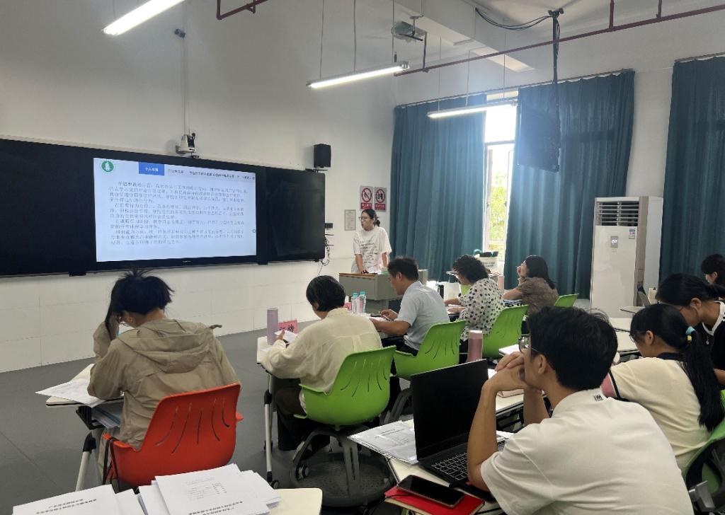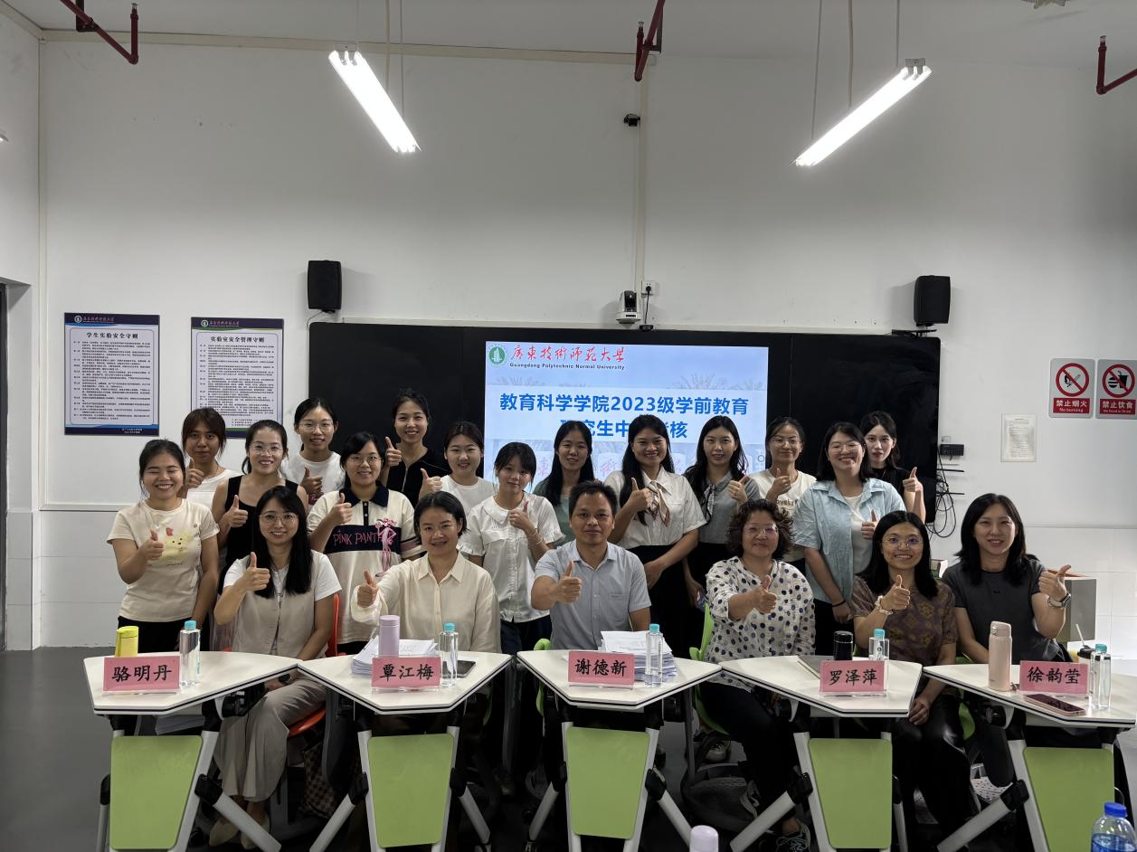 2025年9月26日上午,金年会2023级学前教育专业硕士研究生中期考核工作在白云校区二训502室和306室顺利开展。学院高度重视此次考核工作,专门成立了中期考核领导小组,对全体2023级学前教育研究生的课程学习、科研进展、论文撰写等方面进行了全面、系统的考核与评定。考核分为两组进行,第一组由副院长谢德新、校外专家广州市白云区新兴白云幼儿园园长罗泽萍副教授、覃江梅副教授、骆明丹副教授和徐韵莹老师组成。第二组由徐艳贞教授、校外专家凤凰湖幼儿园园长许晶副教授、唐芬芬副教授、苟晓玲老师和王雨函老师组成。