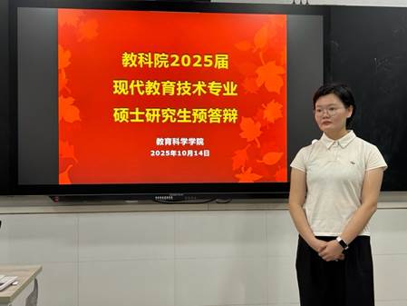 2025年10月14日上午,金年会2025届下半年现代教育技术专业硕士研究生学位论文预答辩在白云校区第二实训楼503顺利举行。本次预答辩特别关注学位论文的质量与细节,学院为此成立了专门的预答辩工作小组,并邀请了相关领域的专家进行评审。